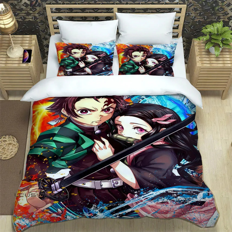 The demon slayer bed set demon slayer bed room set demon slayer twin size comes with three options: bedding set, quilt set, and quilt. The bedding set includes a duvet cover and two standard pillowcases. The quilt set includes a quilt and two standard pillowcases. The demon slayer bed set demon slayer bed room set demon slayer twin size comes in four sizes: Twin, Full, Queen, and King, allowing you to choose the perfect fit for your bed. Made from high-quality polyester material, the demon slayer bed set demon slayer bed room set demon slayer twin size provides a warm, soft touch, is easy to wash, and keeps you cool and comfortable during use.