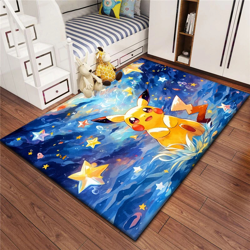 The pokemon area rug pokemon carpets living room area rug indoor rugs is suitable for living rooms, bedrooms, and entryways. It comes in five size options – 2 ft x 3 ft, 3 ft x 5 ft, 4 ft x 6 ft, 5 ft x 8 ft, and 5.2 ft x 9 ft – providing flexible choices to fit various home spaces. Designed with a three-layer structure – flannel surface, sponge middle layer, and non-slip non-woven fabric bottom with plastic dots – this pokemon area rug pokemon carpets living room area rug indoor rugs ensures both comfort and stability. With a thickness of 1.2 cm, the pokemon area rug pokemon carpets living room area rug indoor rugs is soft to the touch, durable for indoor use, and woven and dyed using advanced technology for vibrant color and long-lasting quality.