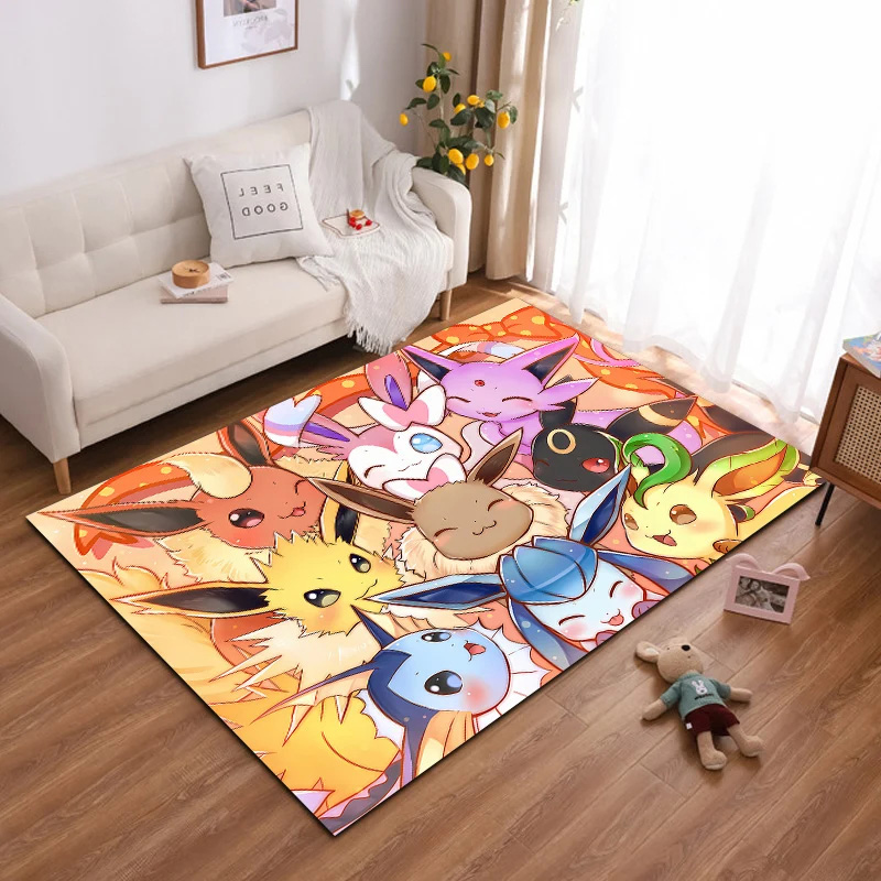 The pokemon area rugs pokemon carpets dining room rugs indoor rugs is suitable for living rooms, bedrooms, and entryways. It comes in five size options – 2 ft x 3 ft, 3 ft x 5 ft, 4 ft x 6 ft, 5 ft x 8 ft, and 5.2 ft x 9 ft – providing flexible choices to fit various home spaces. Designed with a three-layer structure – flannel surface, sponge middle layer, and non-slip non-woven fabric bottom with plastic dots – this pokemon area rugs pokemon carpets dining room rugs indoor rugs ensures both comfort and stability. With a thickness of 1.2 cm, the pokemon area rugs pokemon carpets dining room rugs indoor rugs is soft to the touch, durable for indoor use, and woven and dyed using advanced technology for vibrant color and long-lasting quality.