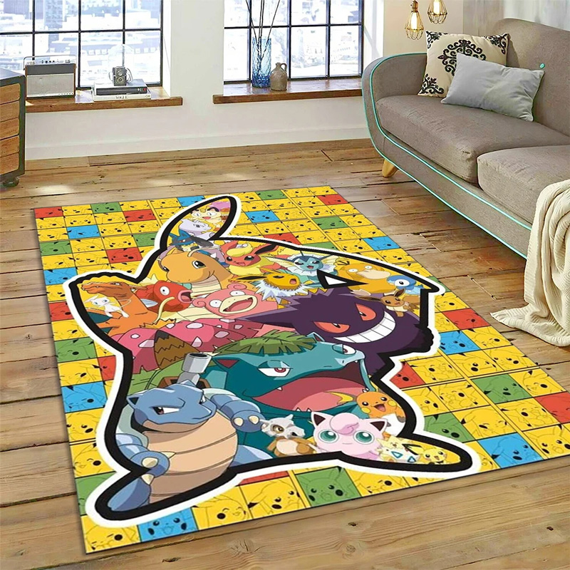 The pokemon rugs pokemon carpet bedroom area rug indoor rug is suitable for living rooms, bedrooms, and entryways. It comes in five size options – 2 ft x 3 ft, 3 ft x 5 ft, 4 ft x 6 ft, 5 ft x 8 ft, and 5.2 ft x 9 ft – providing flexible choices to fit various home spaces. Designed with a three-layer structure – flannel surface, sponge middle layer, and non-slip non-woven fabric bottom with plastic dots – this pokemon rugs pokemon carpet bedroom area rug indoor rug ensures both comfort and stability. With a thickness of 1.2 cm, the pokemon rugs pokemon carpet bedroom area rug indoor rug is soft to the touch, durable for indoor use, and woven and dyed using advanced technology for vibrant color and long-lasting quality.